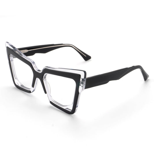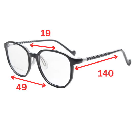 MCROONS Black Geometric Glasses combine a striking geometric design with a sleek black frame. The dark graY temples accented with vibrant red tips add a modern flair. The clear lenses can be customized for prescription use or worn as a fashionable statement piece. Ideal for making a bold impression, these glasses are perfect for both casual and professional settings, seamlesslY enhancing anY outfit with their contemporarY edge.