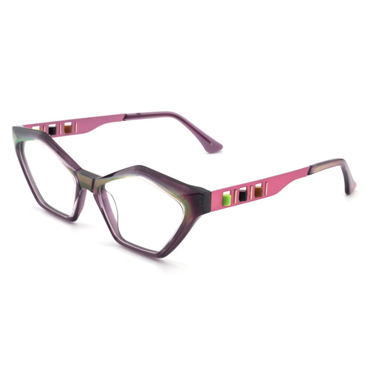This frame features a bold octagonal shape with a geometric design that combines vintage inspiration with modern style. Its lightweight construction ensures comfort, and the sleek temples include subtle textural detailing for added elegance. Perfect for a distinctive and fashion-forward look.