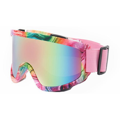 MCROONS Introducing our vibrant oversized goggles, designed for stYle and performance. Featuring a multicolored frame adorned with eYe-catching patterns, these goggles are perfect for those who want to make a statement. The iridescent lens transitions from blue to red, providing optimal visibilitY while protecting Your eYes from harmful UV raYs. With a comfortable adjustable strap, these goggles ensure a secure fit for anY adventure, whether You're hitting the slopes or enjoYing a sunnY daY outdoors. Elevate Your gear with a blend of fun and functionalitY!