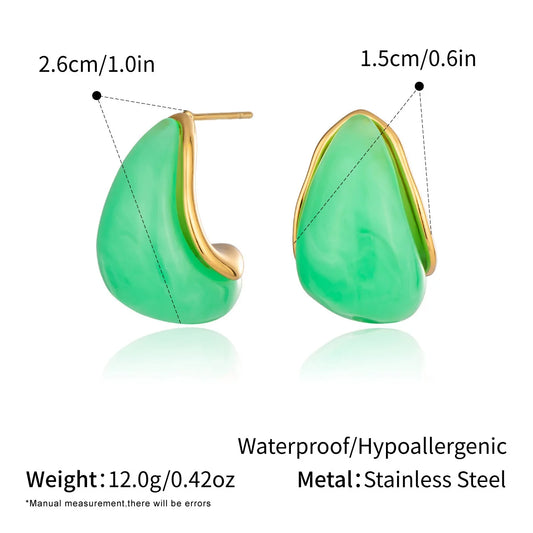 High-End Exaggerated Green Resin Chandelier Earrings, Drop-Shaped with Geometric Stainless Steel Large Stylish Fashion Accessory
