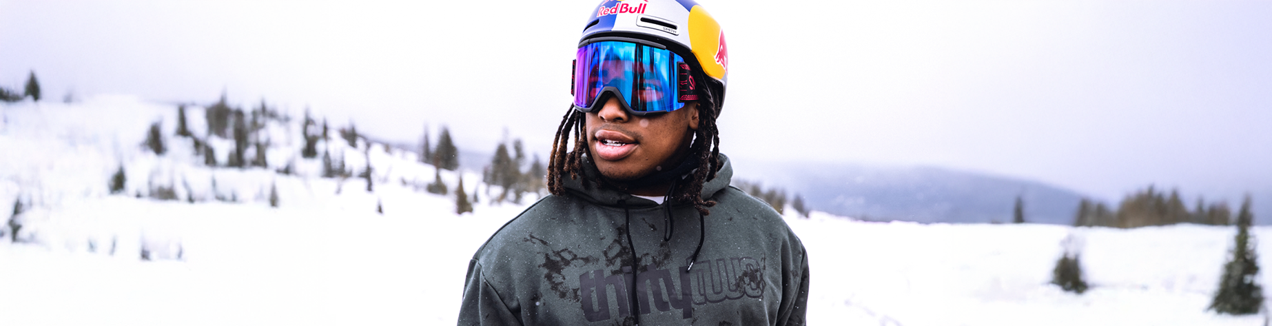 These oversized goggles showcase a stYlish white MCROONS frame paired with striking gradient lenses, designed to enhance visibilitY and reduce glare. With a comfortable fit and secure strap.