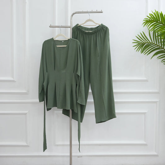 Bottoms: High-waisted, wide-leg pants that provide comfort and style, perfect for workouts or lounging.