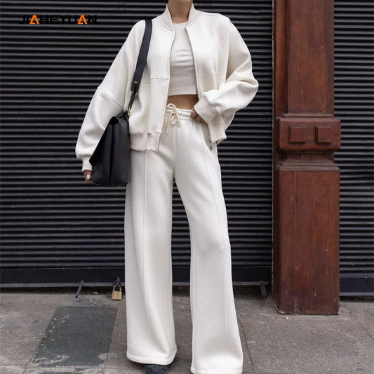 This chic sweatshirt suit combines style and comfort, making it perfect for both workouts and casual wear.