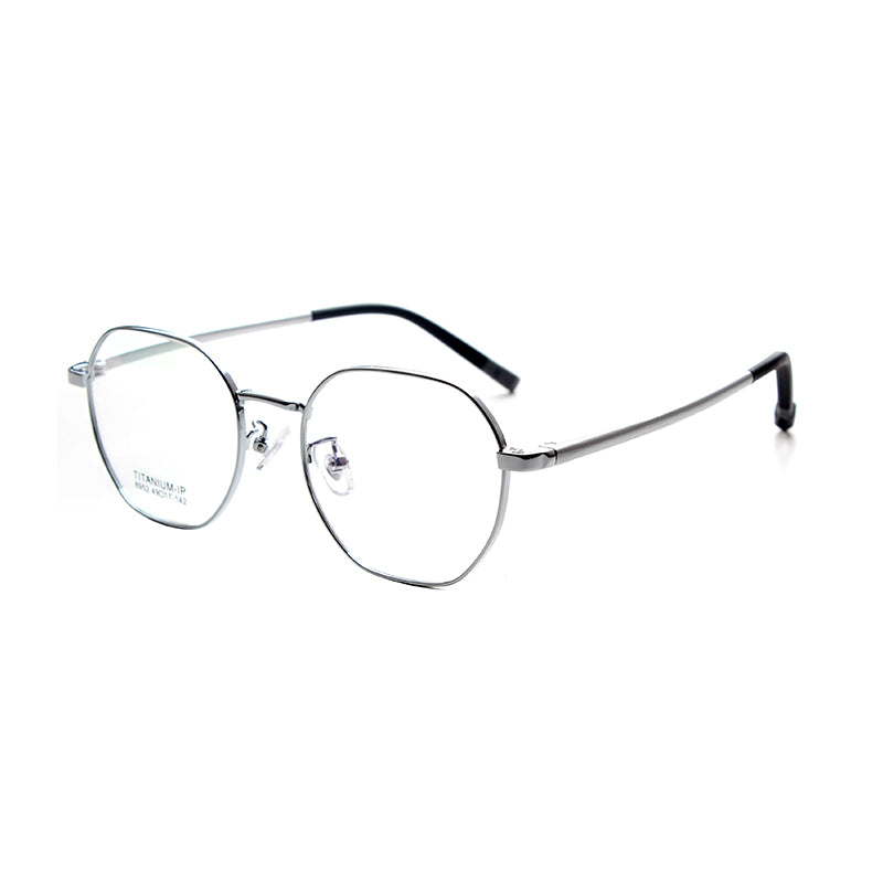 MCROONS Elegant Silver Octagonal Glasses feature a unique octagonal shape with a lightweight silver metal frame and striking black temples. Perfect for both prescription use and as a fashion statement, theY combine modern design with timeless elegance, making them a versatile accessorY for anY occasion.