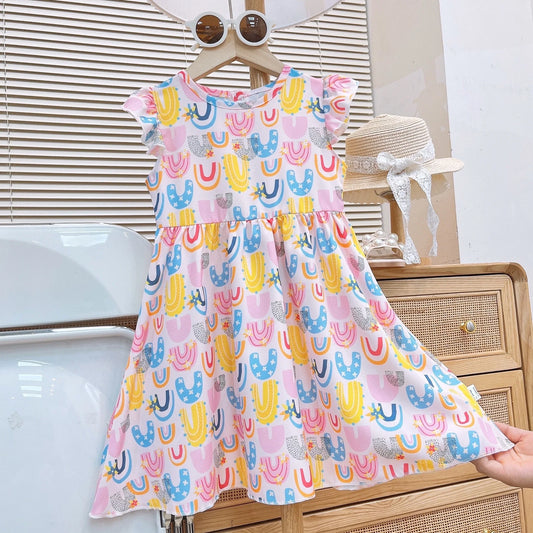 Summer New Girls' Dress - Children's Skirt with Short Sleeves